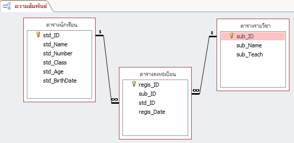 ในการเก็บข้อมูลในตารางนั้น เราจะเก็บข้อมูลที่มีความสัมพันธ์กัน เช่น ตารางนักเรียน ก็จะเก็บรายละเอียดเกี่ยวกับนักเรียน เช่น ชื่อ สกุล เลขที่ ระดับชั้น อายุ วันเกิด เป็นต้น และเมื่อนักเรียนมีการลงทะเบียนวิชาเรียน เราก็จะเก็บรายละเอียดเพื่อสร้างตารางลงเบียนขึ้นมา เช่น นักเรียนลงทะเบียนวิชาใดบ้าง นักเรียนลงทะเบียนวันที่เท่าไหร่ เป็นต้น เมื่อมีรายละเอียดการลงทะเบียน จะต้องมีตารางรายวิชาเพื่อให้ทราบรายละเอียดรายวิชา เช่น ชื่อวิชา หน่วยกิต ครูผู้สอน เป็นต้น ซึ่งที่กล่าวมาทั้งหมดนั้นในโปรแกรม Access 2013 นั้น มีวิธีสร้างความสัมพันธ์ระหว่างตาราง ด้วยการเชื่อมโยงข้อมูลเข้าด้วยกัน ดึงข้อมูลมาใช้ร่วมกัน และก่อนที่จะสร้างความสัมพันธ์นั้นจะต้องเรียนรู้สิ่งที่เกี่ยวข้องกับการสร้างความสัมพันธ์ของตารางก่อน ดังนี้