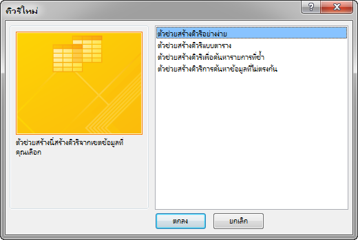 การสร้างคิวรีด้วยตัวช่วยสร้างคิวรีอย่างง่าย