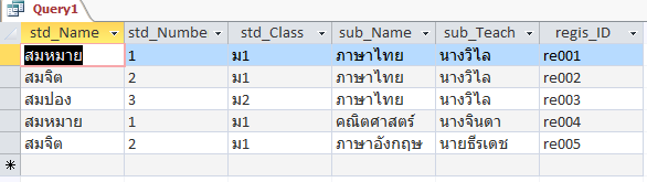5. กดปุ่มมุมมองแผ่นข้อมูล จะพบข้อมูลที่สร้างคิวรีไว้ ดังภาพ