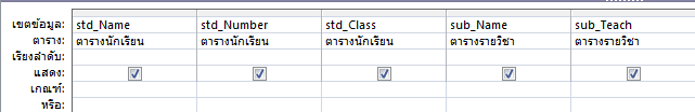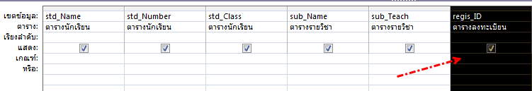 เมื่อเราเลือกฟิลด์มาแล้วปรากฏว่าไม่ได้ใช้งานฟิลด์ที่เลือกมา เราสามารถลบฟิลด์ออกจากคิวรีได้ ดังนี้