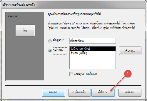 6) เลือกหัวข้อรูปภาพแล้วคลิกถัดไปตามหมายเลข 1