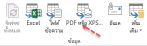 การนำเอาผลลัพธ์รายงานไปใช้นอกโปรแกรม access นั้นสามารถบันทึกเป็นไฟล์ PDF ได้ ซึ่งเป็นไฟล์ที่สะดวกในการใช้งาน โดยจะเปิดผ่านโปรแกรมที่สามารถอ่านไฟล์ PDF ได้นั่นเอง โดยมีวิธีการคือ ไปที่มุมมองแสดงตัวอย่างก่อนพิมพ์ จากนั้นไปที่ PDF หรือ XPS…