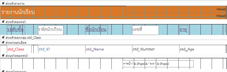 ส่วนสำคัญของรายงานนอกจากรายละเอียดแล้ว ยังมีส่วนหัวรายงานและส่วนท้ายของรายงาน ซึ่งเราสามารถเลือกส่วนประกอบที่จะเพิ่มในส่วนหัวและส่วนท้ายของรายงานได้ โดยมีรายละเอียดดังนี้