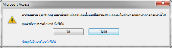 จะปรากฏหน้าจอ ยืนยันการลบ เพราะถ้าลบแล้วทุกอย่างที่อยู่ในส่วนหัวและส่วนท้ายจะหายไปด้วยเช่นกัน