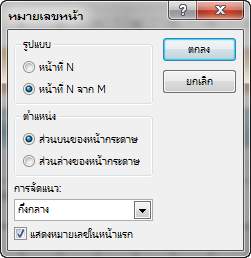 2) จะปรากฏหน้าจอหมายเลขหน้าเพื่อให้เราเลือกรูปแบบ ตำแหน่ง และการจัดแนว เมื่อเราเลือกได้แล้วกด ตกลง